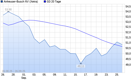 Mit dem Anstieg auf 51,16 EUR hat die AB InBev-Aktie am 25.09.2025 die 20-Tage-Linie nach oben gekreuzt.