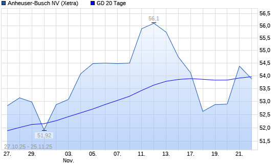 Mit dem Anstieg auf 54,24 EUR hat die AB InBev-Aktie am 24.11.2025 die 20-Tage-Linie nach oben gekreuzt.