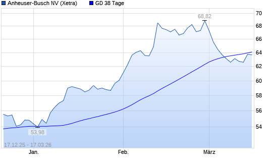 Mit dem Rücksetzer auf 63,94 EUR hat die AB InBev-Aktie am 16.03.2026 die 38-Tage-Linie nach unten gekreuzt.