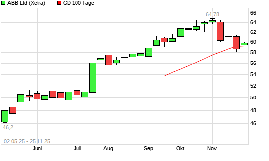 Mit dem Anstieg auf 59,42 EUR hat die ABB-Aktie am 24.11.2025 die 100-Tage-Linie nach oben gekreuzt.
