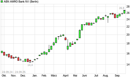 Mit dem Anstieg auf 26,71 EUR hat die ABN Amro Group-Aktie (ISIN NL0011540547) am 23.09.2025 ein neues 5-Jahres-Hoch erreicht und damit den Kurs vom 15.09.2025 eingestellt.