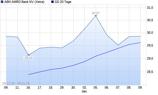 Mit dem Rücksetzer auf 29,47 EUR hat die ABN Amro Group-Aktie am 08.01.2026 die 20-Tage-Linie nach unten gekreuzt.
