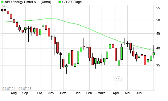 Mit dem Anstieg auf 39,40 EUR hat die ABO Wind-Aktie am 03.07.2025 die 200-Tage-Linie nach oben gekreuzt.
