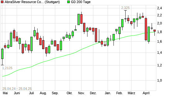 Mit dem Anstieg auf 1,81 EUR hat die ABRAPLATA-Aktie am 24.04.2025 die 200-Tage-Linie nach oben gekreuzt.