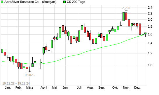 Mit dem Rücksetzer auf 1,60 EUR hat die ABRAPLATA-Aktie am 18.12.2024 die 200-Tage-Linie nach unten gekreuzt.