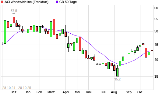 Mit dem Anstieg auf 43,20 EUR hat die ACI Worldwide-Aktie am 27.10.2025 die 50-Tage-Linie nach oben gekreuzt.