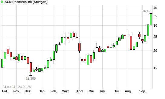 Mit dem Anstieg auf 32,64 EUR hat die ACM Research-Aktie (ISIN US00108J1097) am 23.09.2025 ein neues 3-Jahres-Hoch erreicht und damit den Kurs vom 22.09.2025 eingestellt.