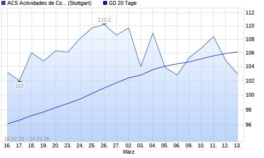 Mit dem Rücksetzer auf 103,40 EUR hat die ACS Actividades de Construccion y Servicios SA-Aktie am 13.03.2026 die 20-Tage-Linie nach unten gekreuzt.