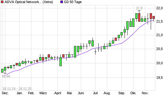 Mit dem Anstieg auf 21,50 EUR hat die ADVA Optical Networking-Aktie am 17.11.2025 die 50-Tage-Linie nach oben gekreuzt.