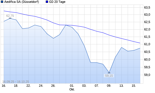 Mit dem Anstieg auf 61,80 EUR hat die AEDIFICA-Aktie am 15.10.2025 die 20-Tage-Linie nach oben gekreuzt.