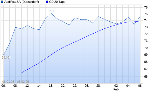 Mit dem Rücksetzer auf 73,35 EUR hat die AEDIFICA-Aktie am 05.02.2026 die 20-Tage-Linie nach unten gekreuzt.