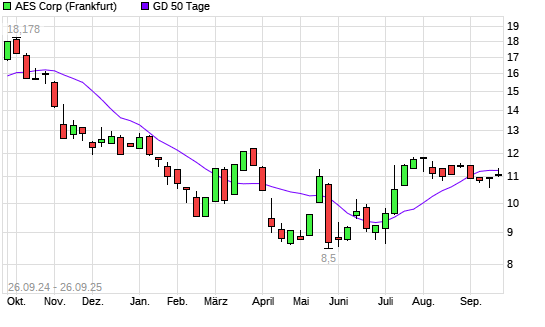 Mit dem Anstieg auf 11,33 EUR hat die AES-Aktie am 25.09.2025 die 50-Tage-Linie nach oben gekreuzt.