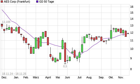 Mit dem Anstieg auf 12,00 EUR hat die AES-Aktie am 17.11.2025 die 50-Tage-Linie nach oben gekreuzt.