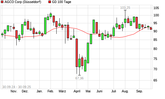 Mit dem Anstieg auf 93,22 EUR hat die AGCO-Aktie am 29.09.2025 die 100-Tage-Linie nach oben gekreuzt.