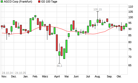Mit dem Anstieg auf 94,96 EUR hat die AGCO-Aktie am 23.10.2025 die 100-Tage-Linie nach oben gekreuzt.