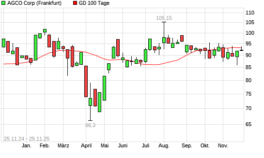 Mit dem Anstieg auf 93,44 EUR hat die AGCO-Aktie am 24.11.2025 die 100-Tage-Linie nach oben gekreuzt.