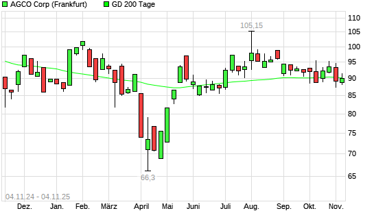 Mit dem Anstieg auf 91,42 EUR hat die AGCO-Aktie am 03.11.2025 die 200-Tage-Linie nach oben gekreuzt.