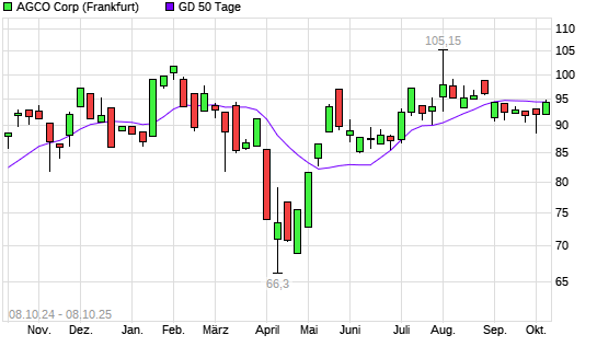 Mit dem Anstieg auf 94,50 EUR hat die AGCO-Aktie am 07.10.2025 die 50-Tage-Linie nach oben gekreuzt.