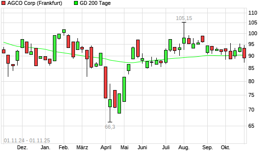 Mit dem Rücksetzer auf 89,18 EUR hat die AGCO-Aktie am 31.10.2025 die 200-Tage-Linie nach unten gekreuzt.