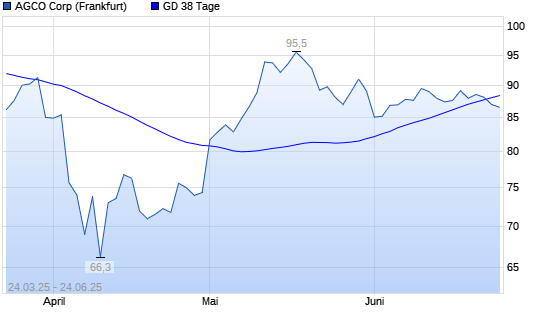 Mit dem Rücksetzer auf 86,98 EUR hat die AGCO-Aktie am 23.06.2025 die 38-Tage-Linie nach unten gekreuzt.