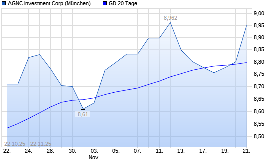 Mit dem Anstieg auf 8,88 EUR hat die AGNC INV.-Aktie am 21.11.2025 die 20-Tage-Linie nach oben gekreuzt.