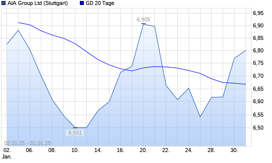 Mit dem Anstieg auf 6,66 EUR hat die AIA Group-Aktie am 30.01.2025 die 20-Tage-Linie nach oben gekreuzt.