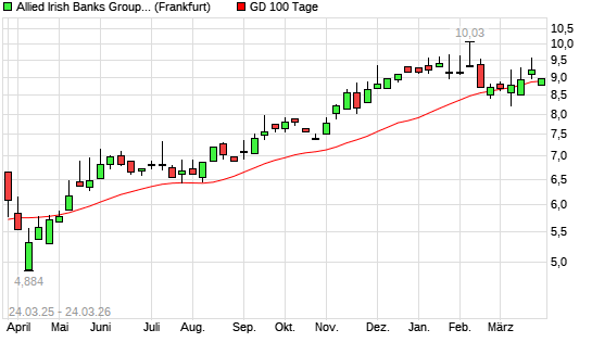 Mit dem Rücksetzer auf 8,77 EUR hat die AIB Group am 23.03.2026 die 100-Tage-Linie nach unten gekreuzt.