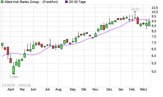 Mit dem Rücksetzer auf 8,91 EUR hat die AIB Group am 13.03.2026 die 50-Tage-Linie nach unten gekreuzt.