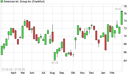 Mit dem Anstieg auf 75,20 EUR hat die AIG-Aktie (ISIN US0268747849) am 26.02.2025 ein neues 10-Jahres-Hoch erreicht und damit den Kurs vom 25.02.2025 eingestellt.