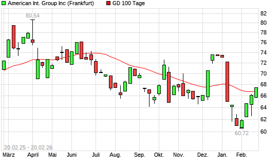 Mit dem Anstieg auf 67,42 EUR hat die AIG-Aktie am 19.02.2026 die 100-Tage-Linie nach oben gekreuzt.