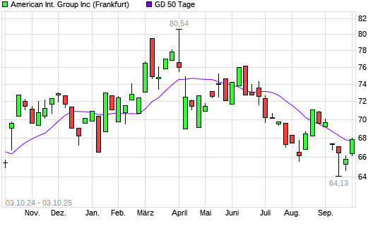 Mit dem Anstieg auf 68,03 EUR hat die AIG-Aktie am 02.10.2025 die 50-Tage-Linie nach oben gekreuzt.