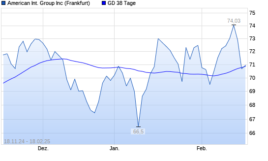 Mit dem Rücksetzer auf 70,69 EUR hat die AIG-Aktie am 17.02.2025 die 38-Tage-Linie nach unten gekreuzt.