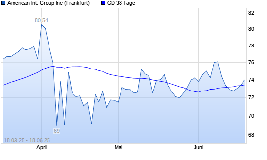 Mit dem Anstieg auf 73,44 EUR hat die AIG-Aktie am 17.06.2025 die 38-Tage-Linie nach oben gekreuzt.Die AIG-Aktie befindet sich seit dem 23.04.2025 im langfristigen Aufwärtstrend und hat in diesem ...weiterlesen