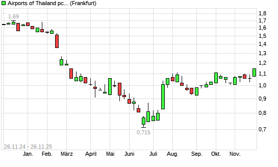 Mit dem Anstieg auf 1,15 EUR hat die AIRPORTS OF THAI UTS-Aktie (ISIN TH0765010R16) am 25.11.2025 ein neues 6-Monats-Hoch erreicht und damit den Kurs vom 03.10.2025 eingestellt.