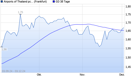 Mit dem Anstieg auf 1,66 EUR hat die AIRPORTS OF THAI UTS-Aktie am 02.12.2024 die 38-Tage-Linie nach oben gekreuzt.