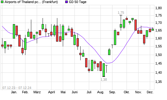 Mit dem Rücksetzer auf 1,66 EUR hat die AIRPORTS OF THAI UTS-Aktie am 06.12.2024 die 50-Tage-Linie nach unten gekreuzt.