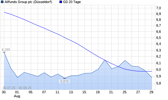 Mit dem Rücksetzer auf 5,95 EUR hat die ALLFUNDS GROUP-Aktie am 29.08.2025 die 20-Tage-Linie nach unten gekreuzt.
