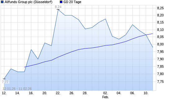 Mit dem Rücksetzer auf 8,07 EUR hat die ALLFUNDS GROUP-Aktie am 10.02.2026 die 20-Tage-Linie nach unten gekreuzt.
