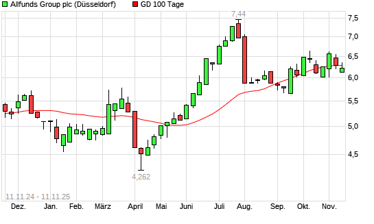 Mit dem Rücksetzer auf 6,14 EUR hat die ALLFUNDS GROUP-Aktie am 10.11.2025 die 100-Tage-Linie nach unten gekreuzt.Die ALLFUNDS GROUP-Aktie befindet sich seit dem 23.05.2025 im langfristigen ...weiterlesen