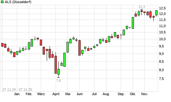 Mit dem Anstieg auf 12,50 EUR hat die ALS-Aktie (ISIN AU000000ALQ6) am 26.11.2025 ein neues All-Time-High erreicht und damit den Kurs vom 21.10.2025 eingestellt.