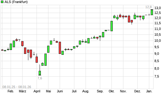 Mit dem Anstieg auf 12,60 EUR hat die ALS-Aktie (ISIN AU000000ALQ6) am 07.01.2026 ein neues All-Time-High erreicht und damit den Kurs vom 26.11.2025 eingestellt.