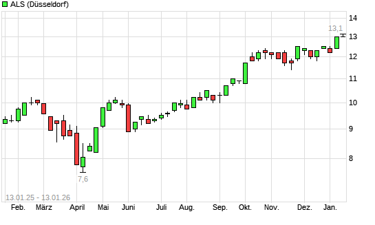 Mit dem Anstieg auf 12,90 EUR hat die ALS-Aktie (ISIN AU000000ALQ6) am 12.01.2026 ein neues All-Time-High erreicht und damit den Kurs vom 08.01.2026 eingestellt.