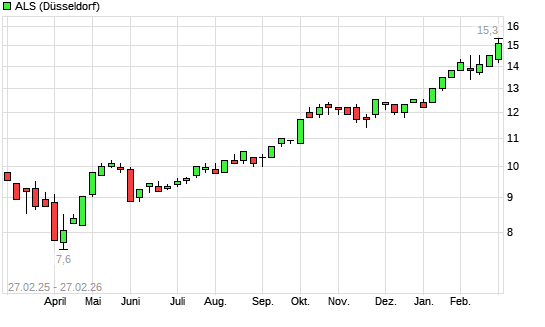Mit dem Anstieg auf 15,10 EUR hat die ALS-Aktie (ISIN AU000000ALQ6) am 26.02.2026 ein neues All-Time-High erreicht und damit den Kurs vom 25.02.2026 eingestellt.