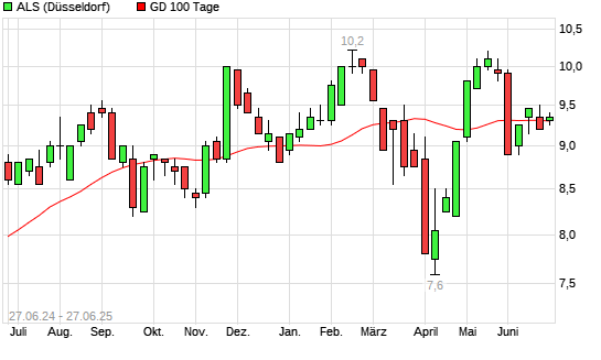 Mit dem Anstieg auf 9,30 EUR hat die ALS-Aktie am 26.06.2025 die 100-Tage-Linie nach oben gekreuzt.