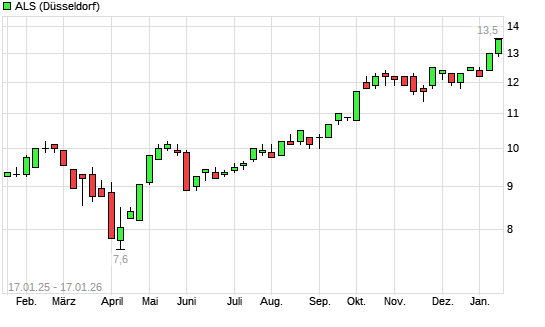 Mit dem Anstieg auf 13,40 EUR hat die ALS-Aktie (ISIN AU000000ALQ6) am 16.01.2026 ein neues All-Time-High erreicht und damit den Kurs vom 13.01.2026 eingestellt.Die ALS-Aktie befindet sich seit ...weiterlesen