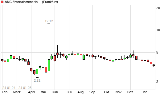 Mit dem Rücksetzer auf 3,27 EUR hat die AMC Entertainment-Aktie (ISIN US00165C3025) am 23.01.2025 ein neues 6-Monats-Tief erreicht und damit den Kurs vom 22.01.2025 eingestellt.