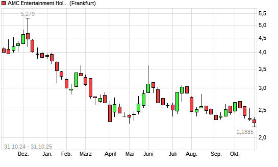 Mit dem Rücksetzer auf 2,23 EUR hat die AMC Entertainment-Aktie (ISIN US00165C3025) am 30.10.2025 ein neues All-Time-Low erreicht und damit den Kurs vom 04.04.2025 eingestellt.