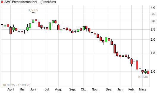 Mit dem Rücksetzer auf 0,97 EUR hat die AMC Entertainment-Aktie (ISIN US00165C3025) am 09.03.2026 ein neues All-Time-Low erreicht und damit den Kurs vom 26.02.2026 eingestellt.