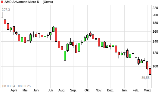Mit dem Rücksetzer auf 91,63 EUR hat die AMD-Aktie (ISIN US0079031078) am 07.03.2025 ein neues 12-Monats-Tief erreicht und damit den Kurs vom 06.03.2025 eingestellt.