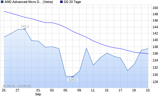 Mit dem Anstieg auf 137,04 EUR hat die AMD-Aktie am 22.09.2025 die 20-Tage-Linie nach oben gekreuzt.